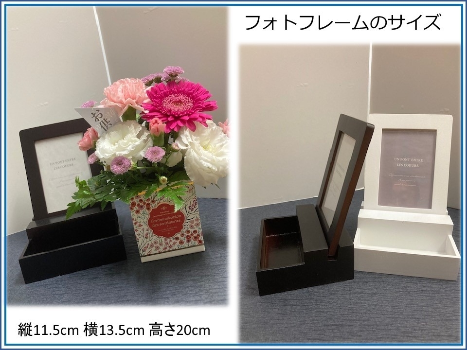 ペットに最適。お供え用フラワーアレンジメントとフォトフレームセット1(白)